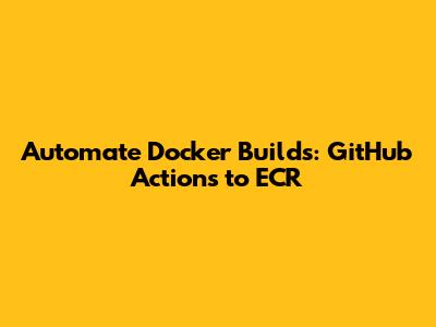 Automate Docker Builds: GitHub Actions To ECR